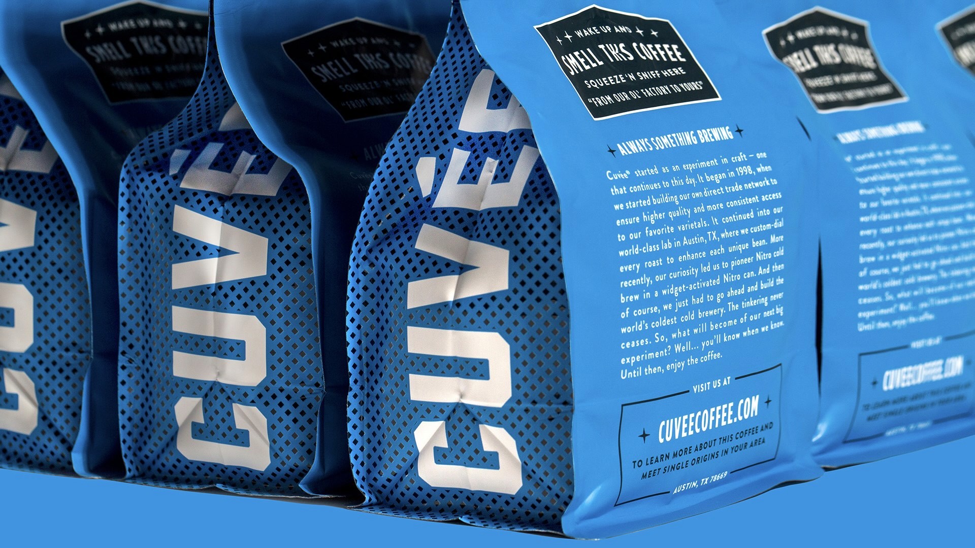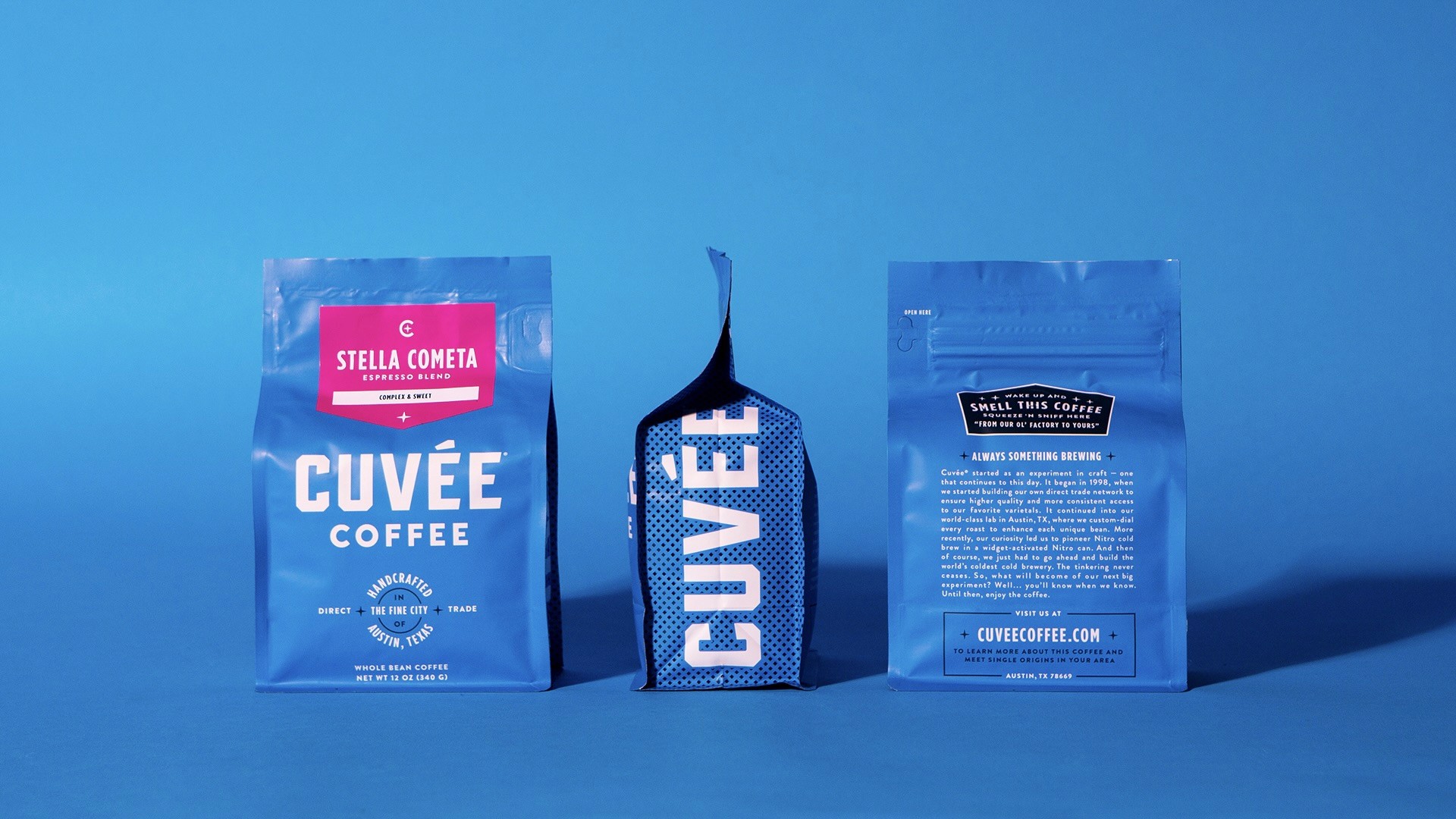 Cuvee Coffee was just coming onto the scene and needed new packagine for their 1 & 5lb bags of coffee and first three flavors of their canned coffee beverage. We picked a bright bold color story for their beans from around the world and piloted these beautiful cans for the launch of their new Nitro Cold Brew.