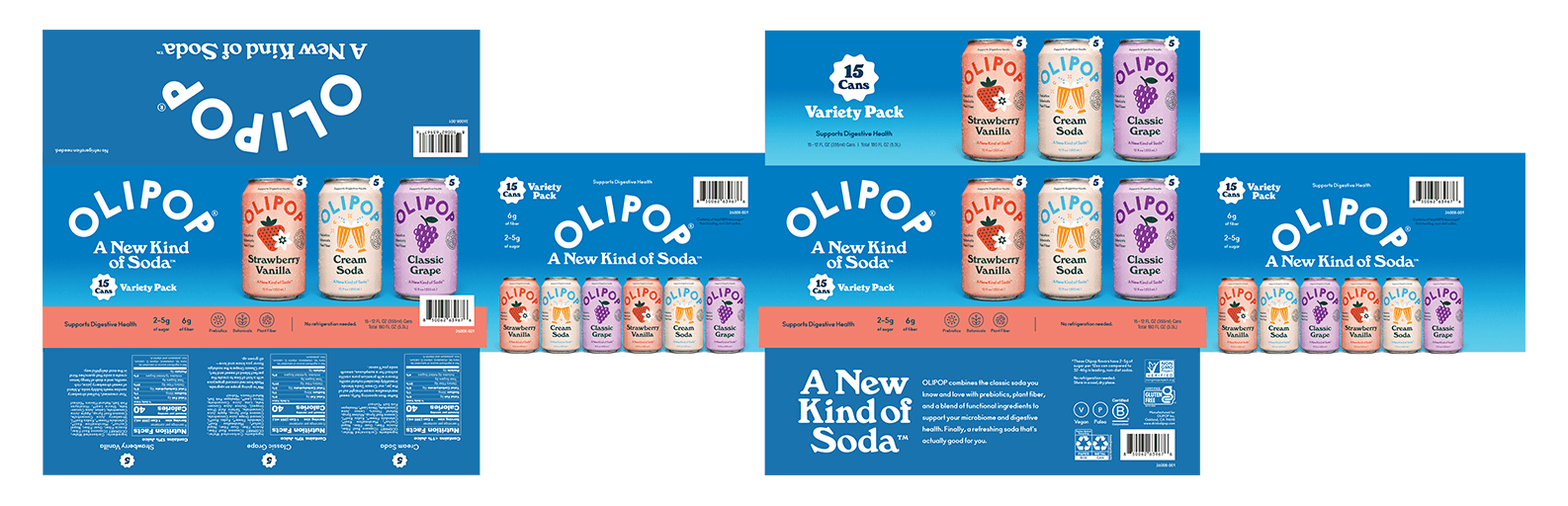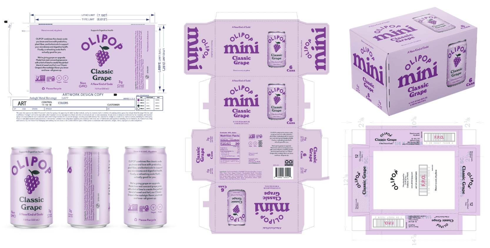 We started off making branded tasting cups for health conventions not knowing where this probiotic soda brand would end up, but 6 years later we helped launch this startup brand into the mass retail market. With cans, cartons, trays and POS in all your favorite major retailers across the country, we have become OLIPOPS's production design arm. From extensive color explorations, mechanicals, sales assets, can pilots and press checks, we handle any and all types of production needed to keep them building their brand.